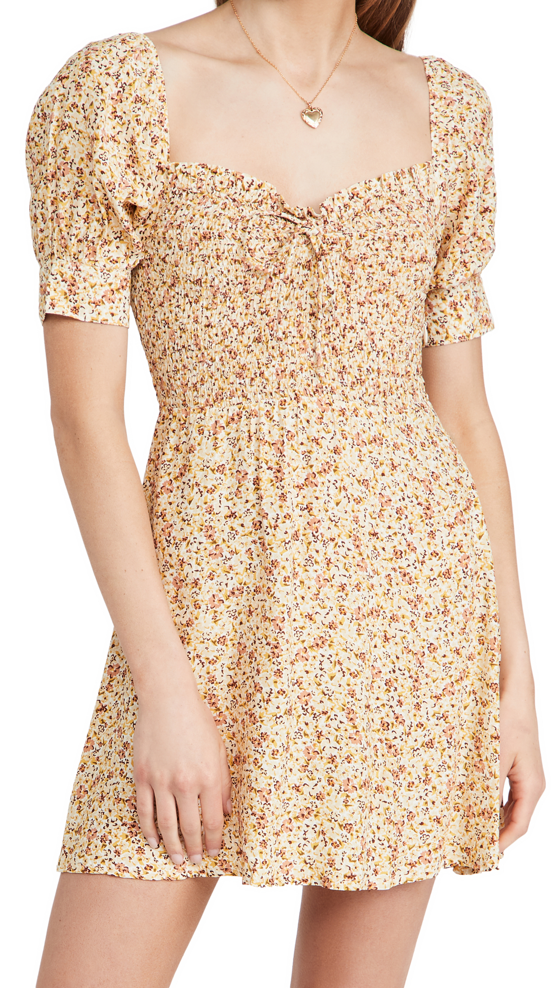 Product Name | Custom Vestido Square Collar Ties Short Puff Sleeves A-Line Mini Floral Casual Dress Women |