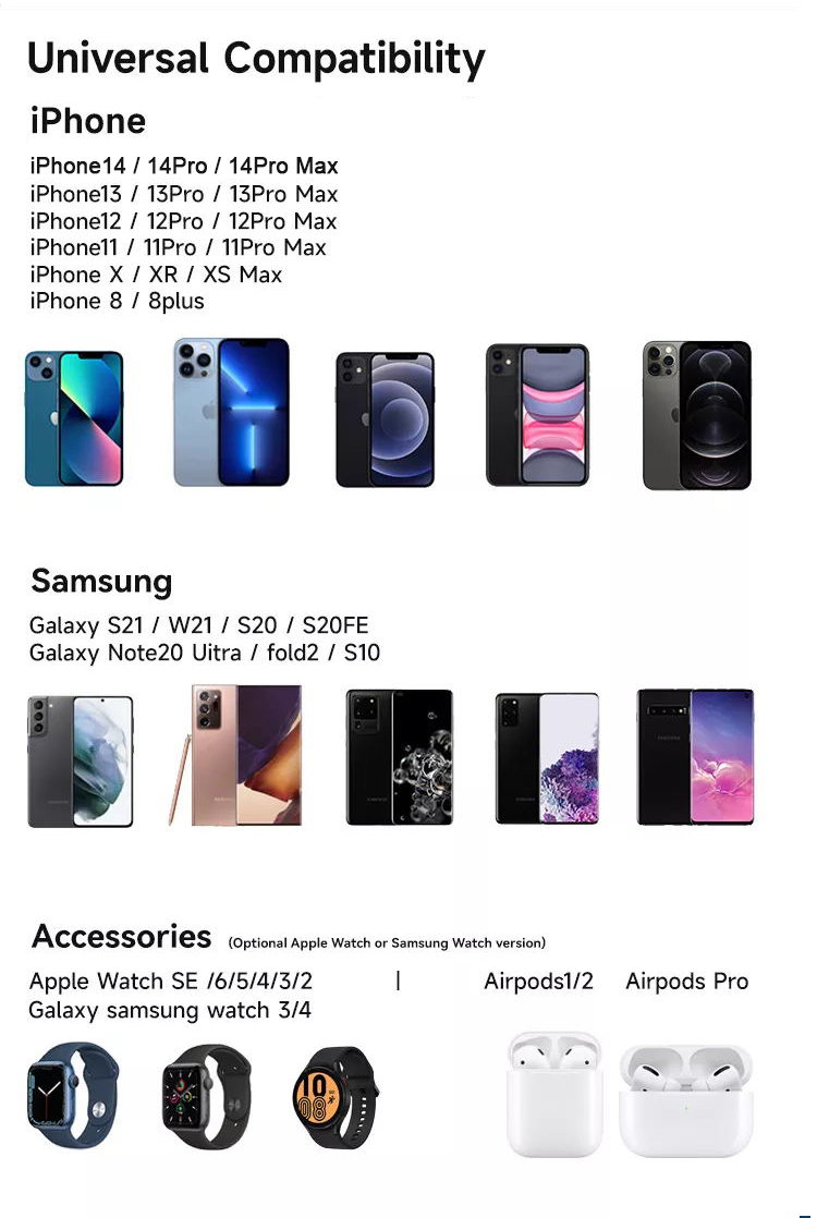 (4). The charging power of the mobile phone is 15W, the charging power of the watch is 2.5W