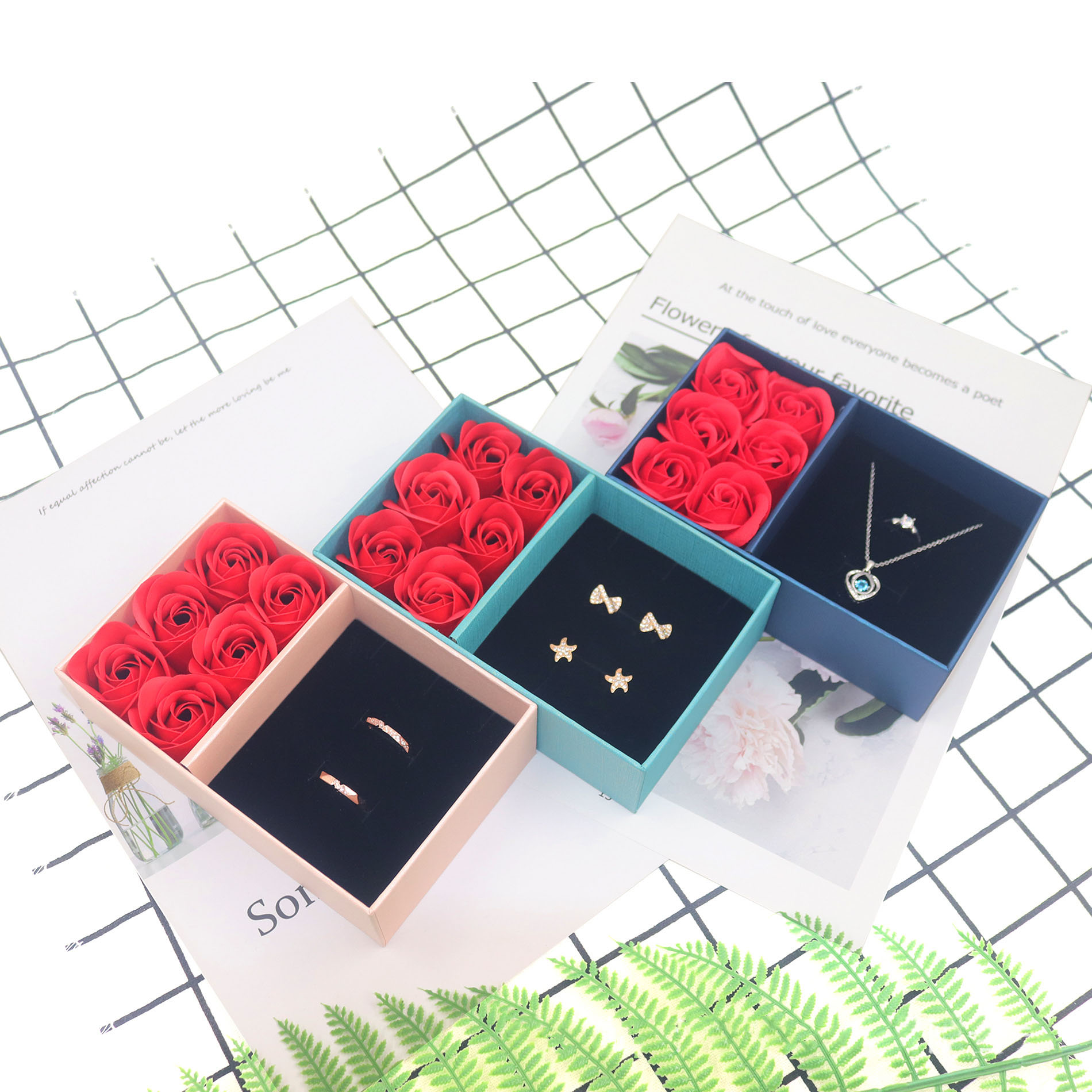 Elegant Red Rose Gift Drawer Jewelry Box Pendant Necklace Packaging Box