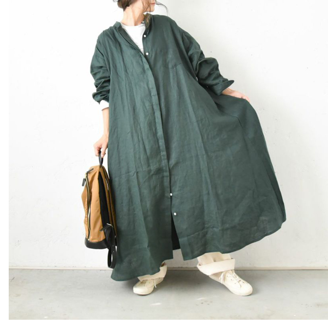 Japanese brands clothes linen long dress shirt ladies' fashion 08039