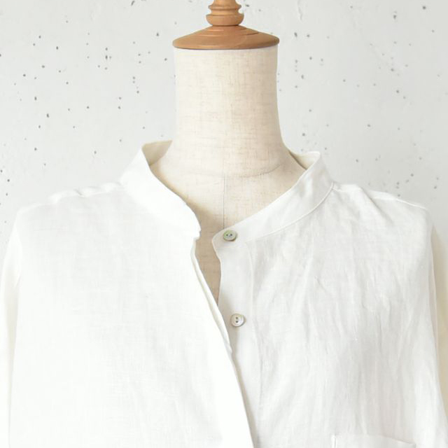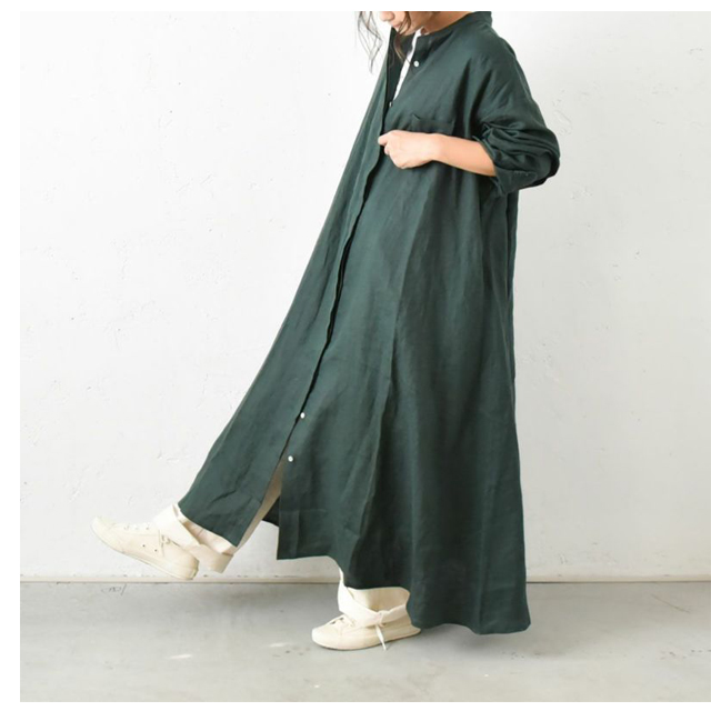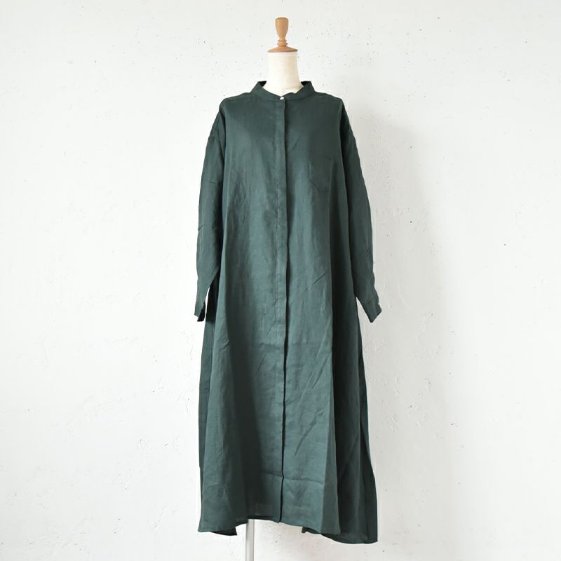 A-line stand collar hiyoku linen dress