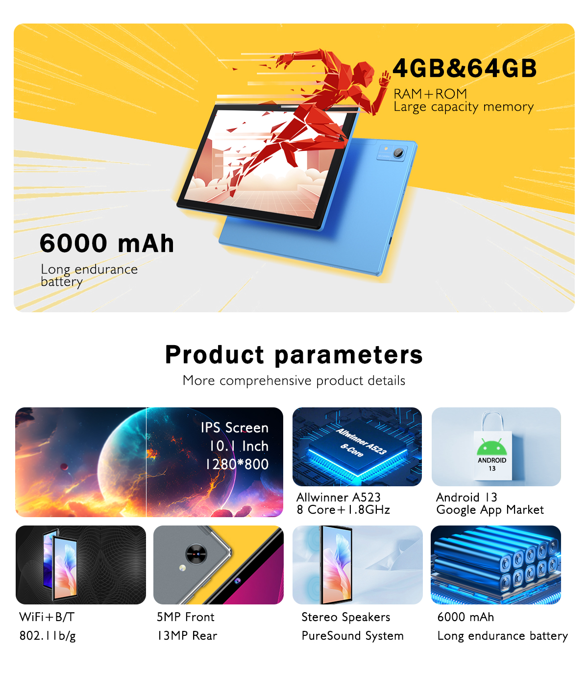 Mother board | Allwiner A523 Octa core CPU, 2.0GHZ | ||