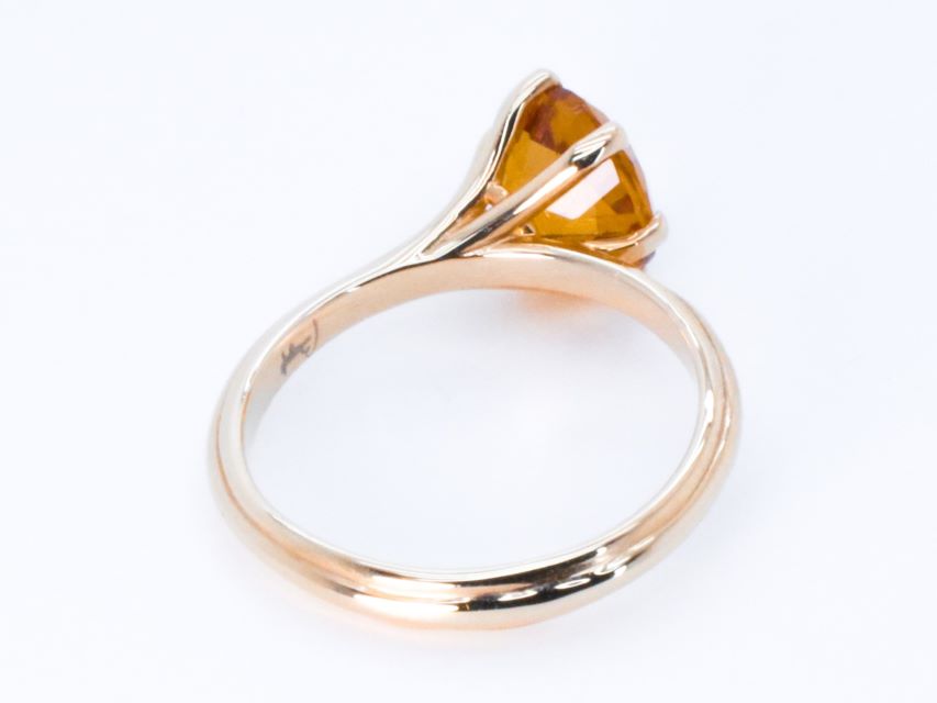 The Egle ring is expertly fashioned from 18 karat rose gold, showcasing a captivating round mixed cut natural Citrine Quartz weighing approximately 2.09 carats, with a diameter of 7.95 mm. Weighing a total of 3.62 grams, this ring is a true embodiment of grace and beauty. Its size is US 6.75, offering a comfortable and versatile fit.