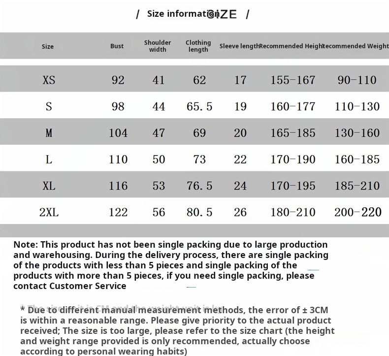 Size  | XS-2XL  | ||||||