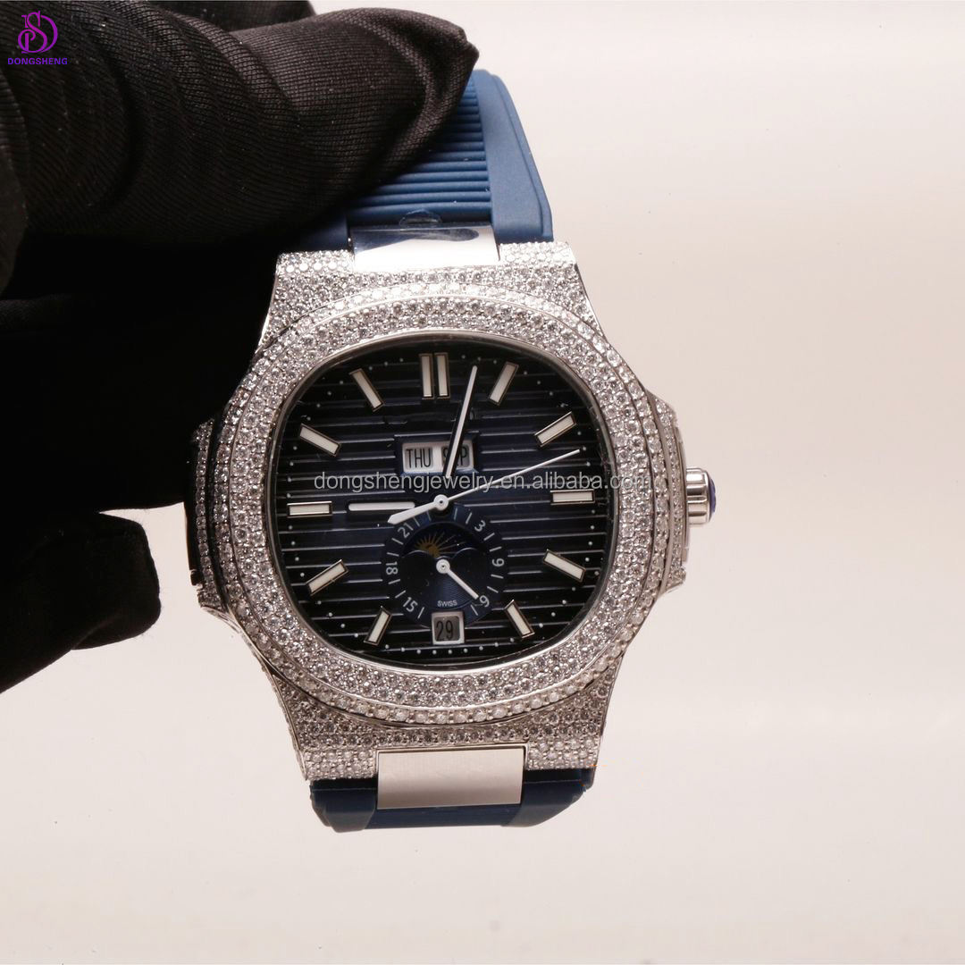 Factory Custom Pass Diamond Test Iced Out Luxury Jewelry D Vvs Moissanite Diamond Watch Hip Hop Full Diamond Watches For Men