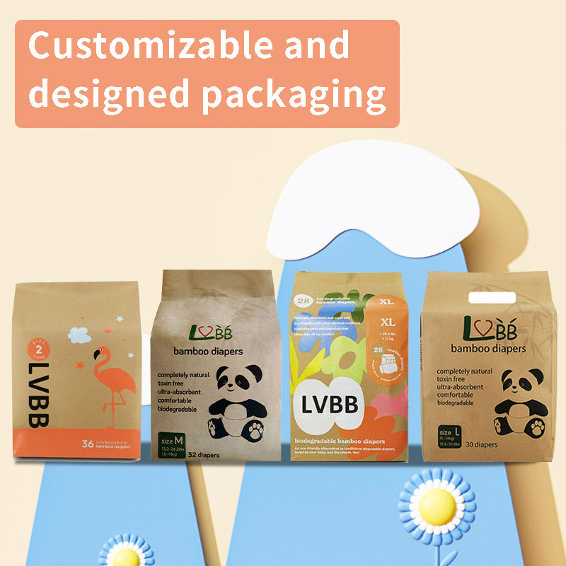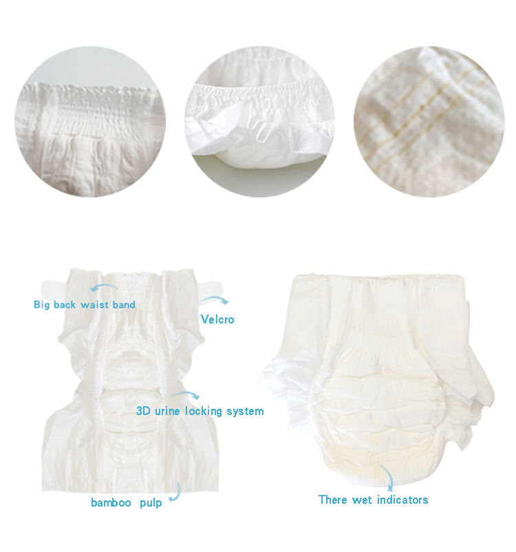 OEM organic 100% Bamboo biodegradable baby diaper Nappies Disposable Baby Tape Diapers with wetness indicator color changing