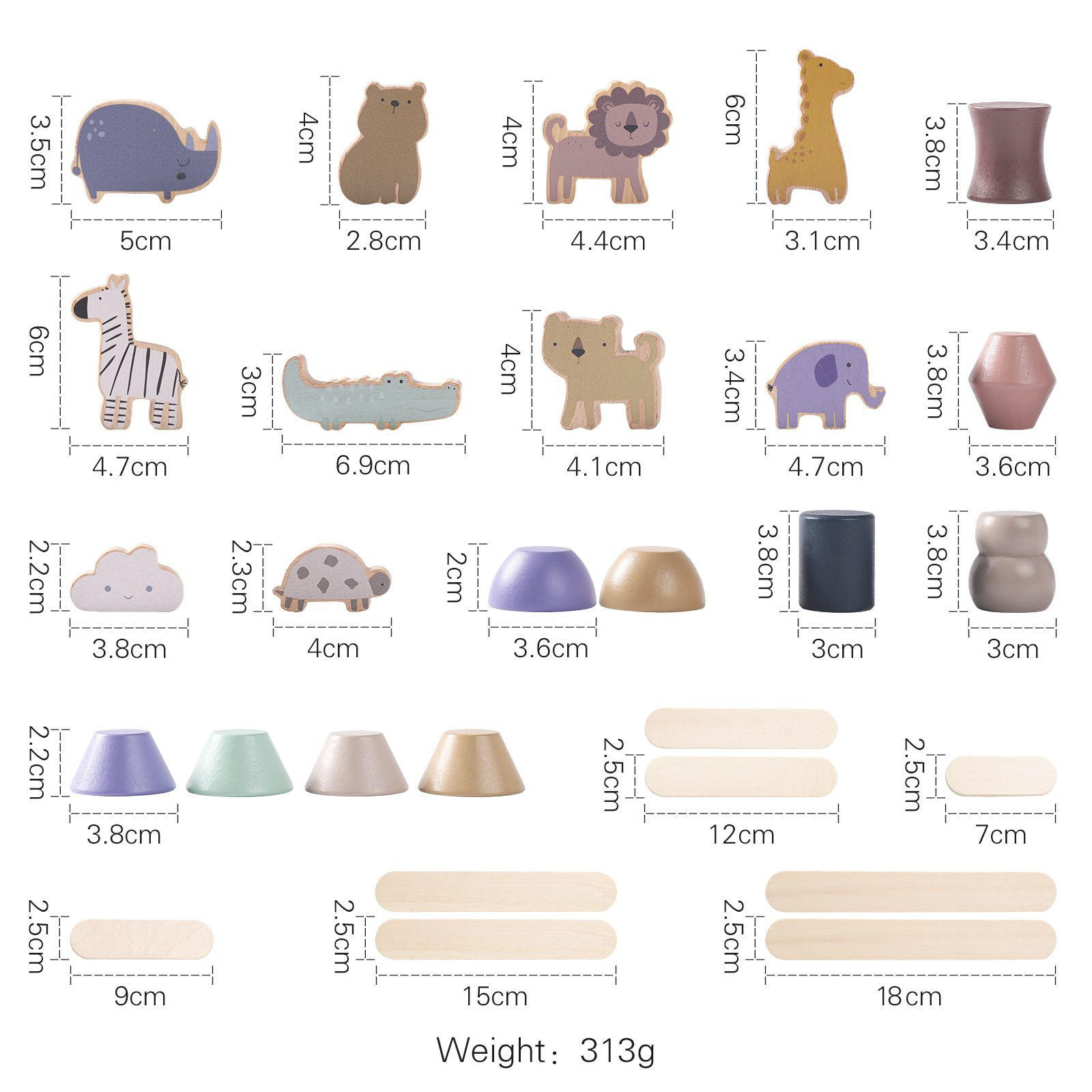 Children's solid wood early education cognitive toys ins wind block wood animal stacking balance wood puzzle toys