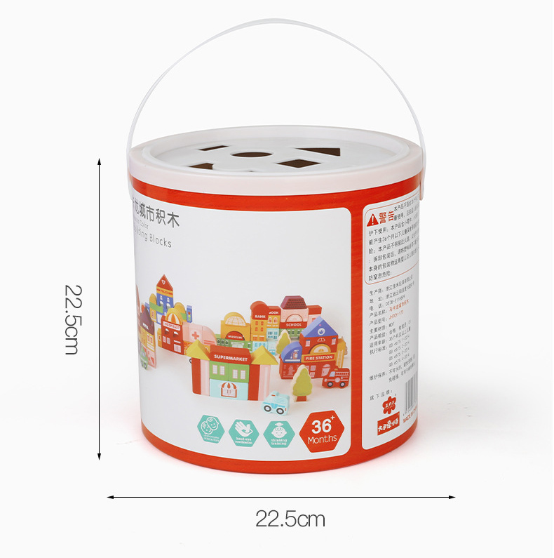 Children's Wooden Macaroon City Building Block Stacking Toy Toddler Interactive Kids Wood Early Education Building Block Toys