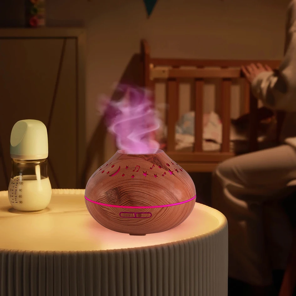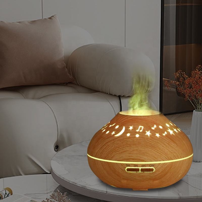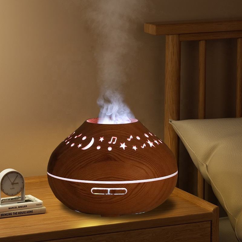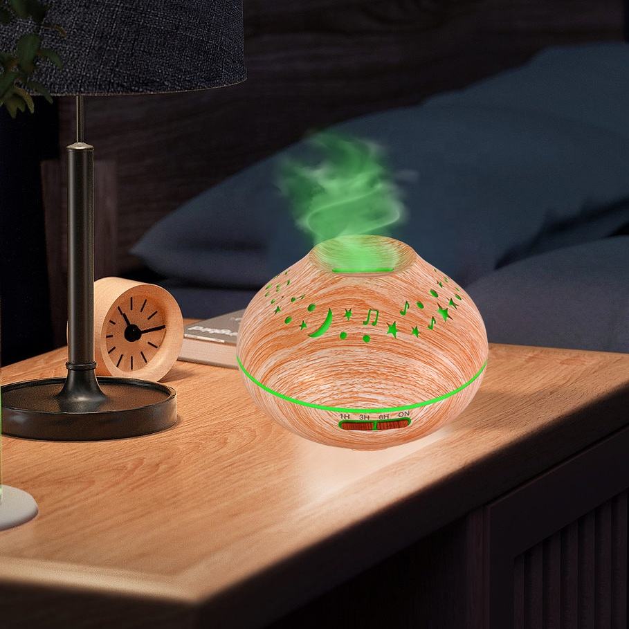 New Star Moon Colorful Lighting Atmosphere Home Decorative Wood Grain Aromatreatment Humidifier