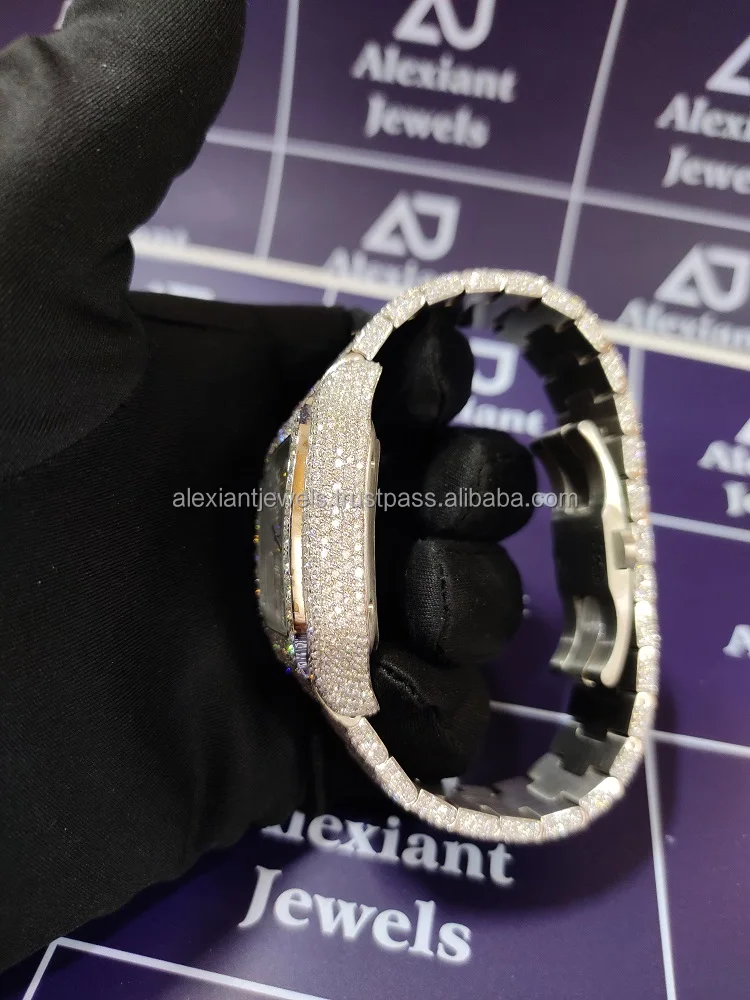 40MM New Brand Iced Out Watch Stainless Steel Sparkling Handmade Setting Bust Down VVS Moissanite Watches For Fashion Jewelry