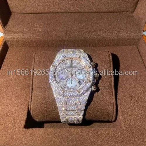 Gold Plated luxury bezel fully iced out moissanite diamond watch with hip hop style for gifting or business purpose from india