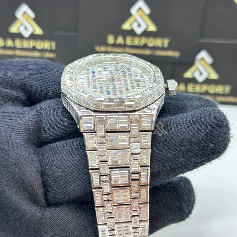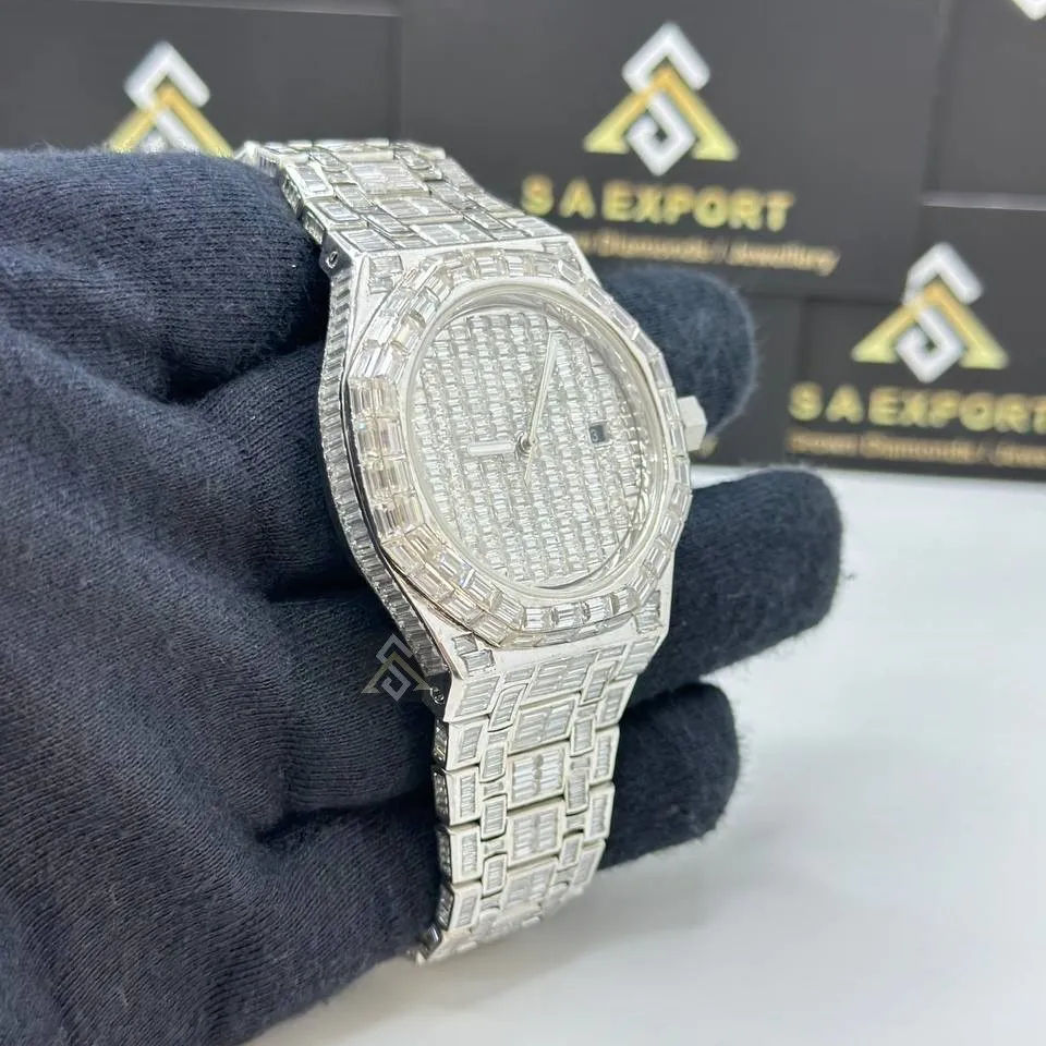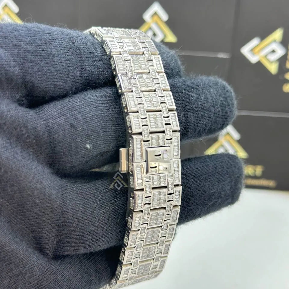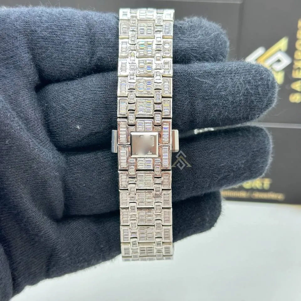 Handmade Moissanite Diamond Watch Iced Out Sterling Silver Watch Unisex Diamond Watch Men Wrist Shiny Bling Hip Hop Fully Iced
