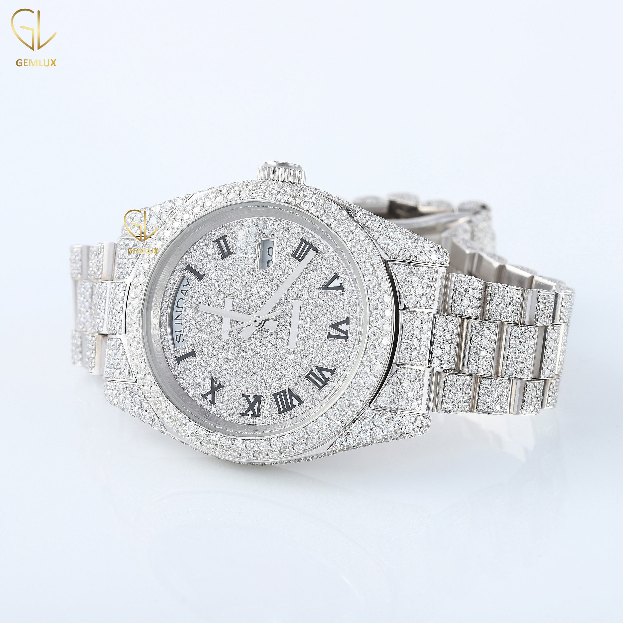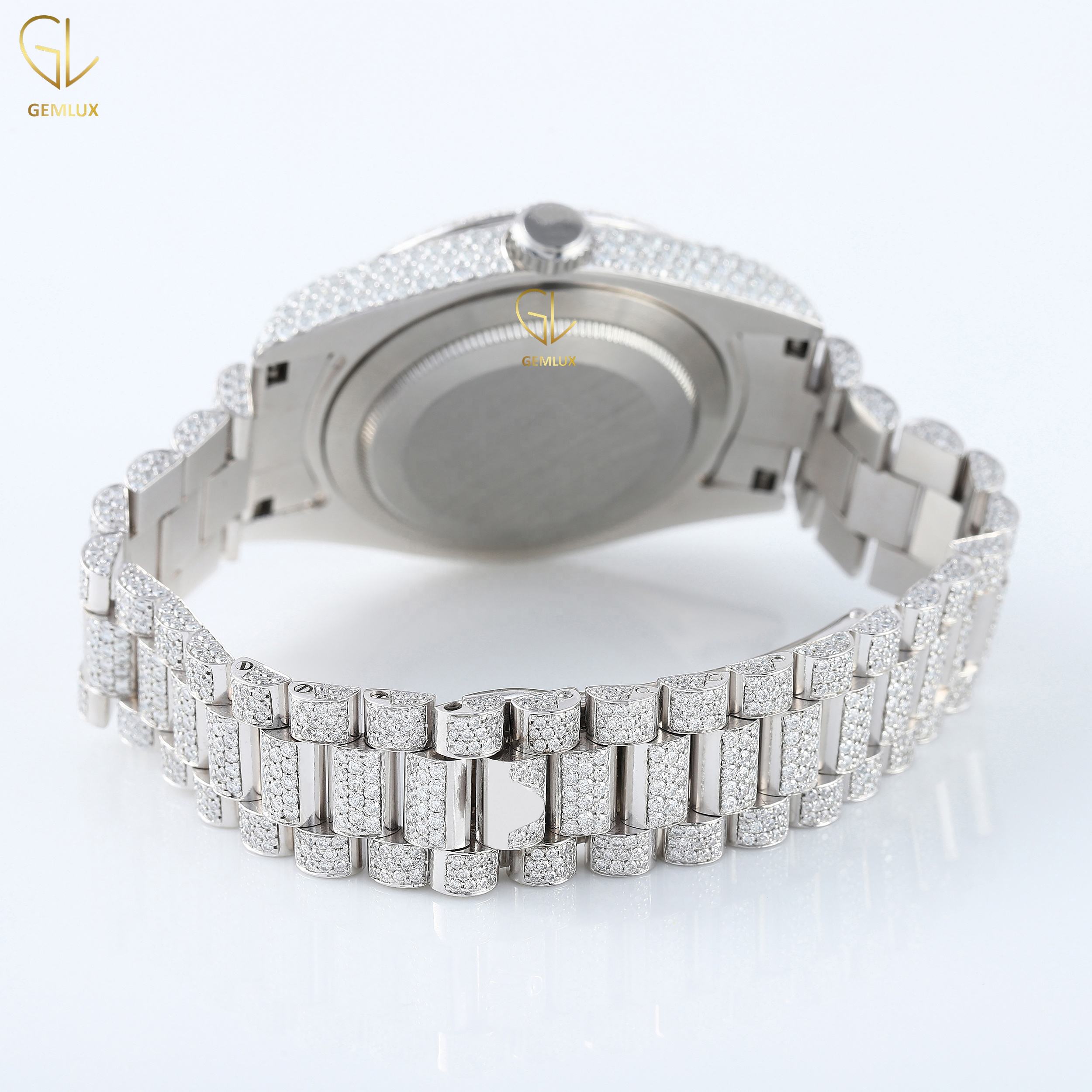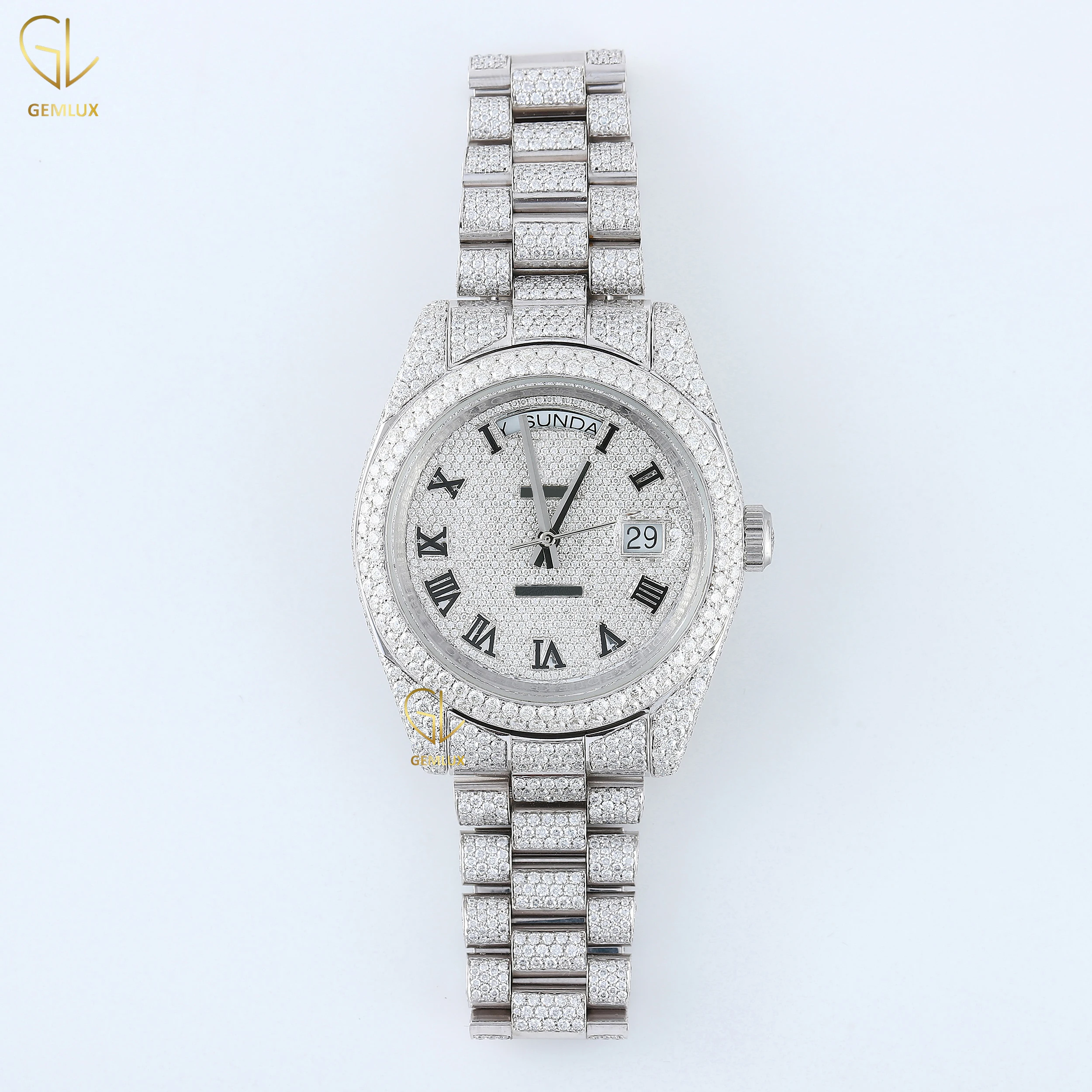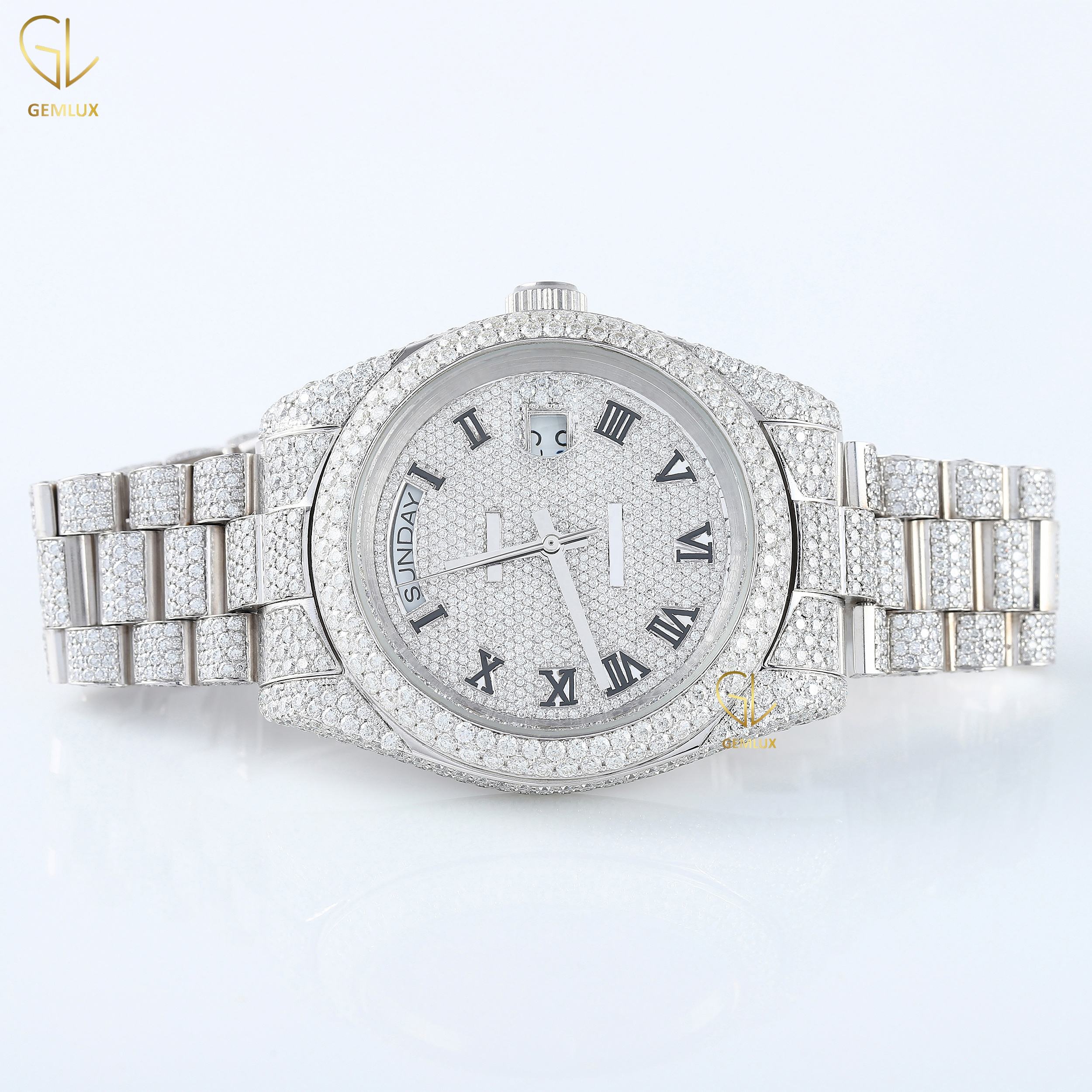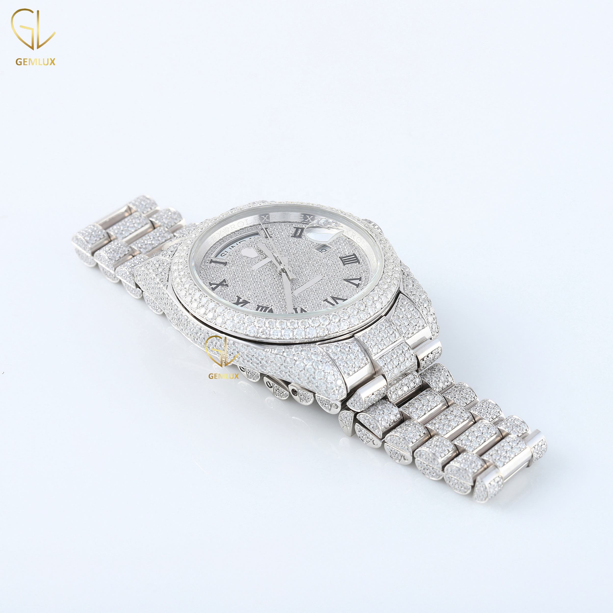 New Trendy charm fully iced out D vvs round brilliant cut crystal romal dial Just Date real Moissanite diamond jewelry watch
