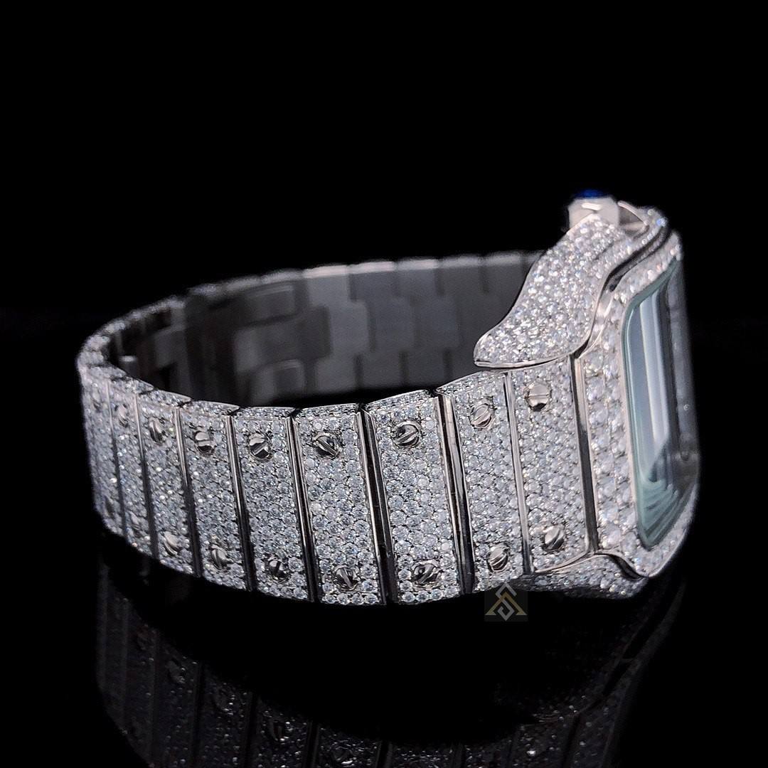 Custom Iced Out CVD Moissanite Diamond Mechanical Movement Watch Set Luxury Quartz Watches Diamond Bracelet Watch Bands Jewelry