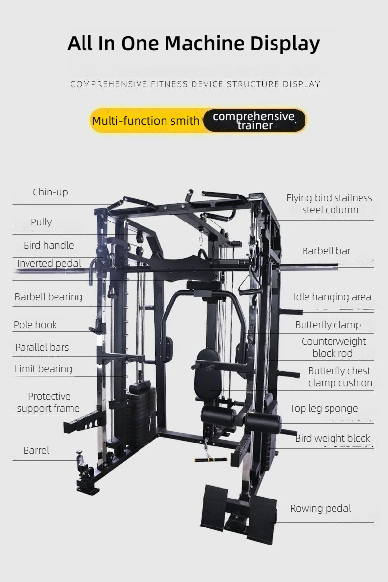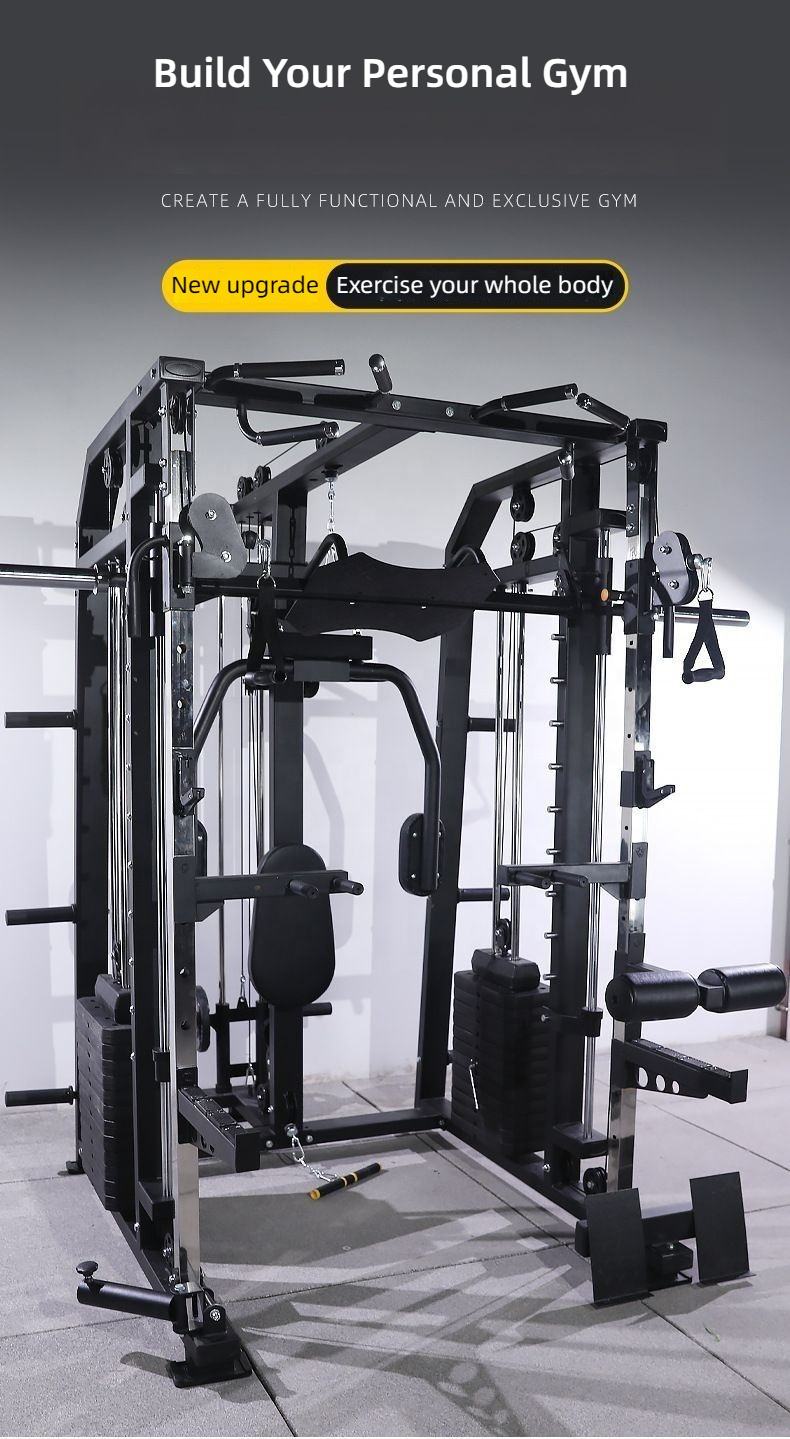 Professional All In One Smith Machine Power Gym Cage Cable Crossover Multi Functional Squat Rack Fitness Workout Equipment
