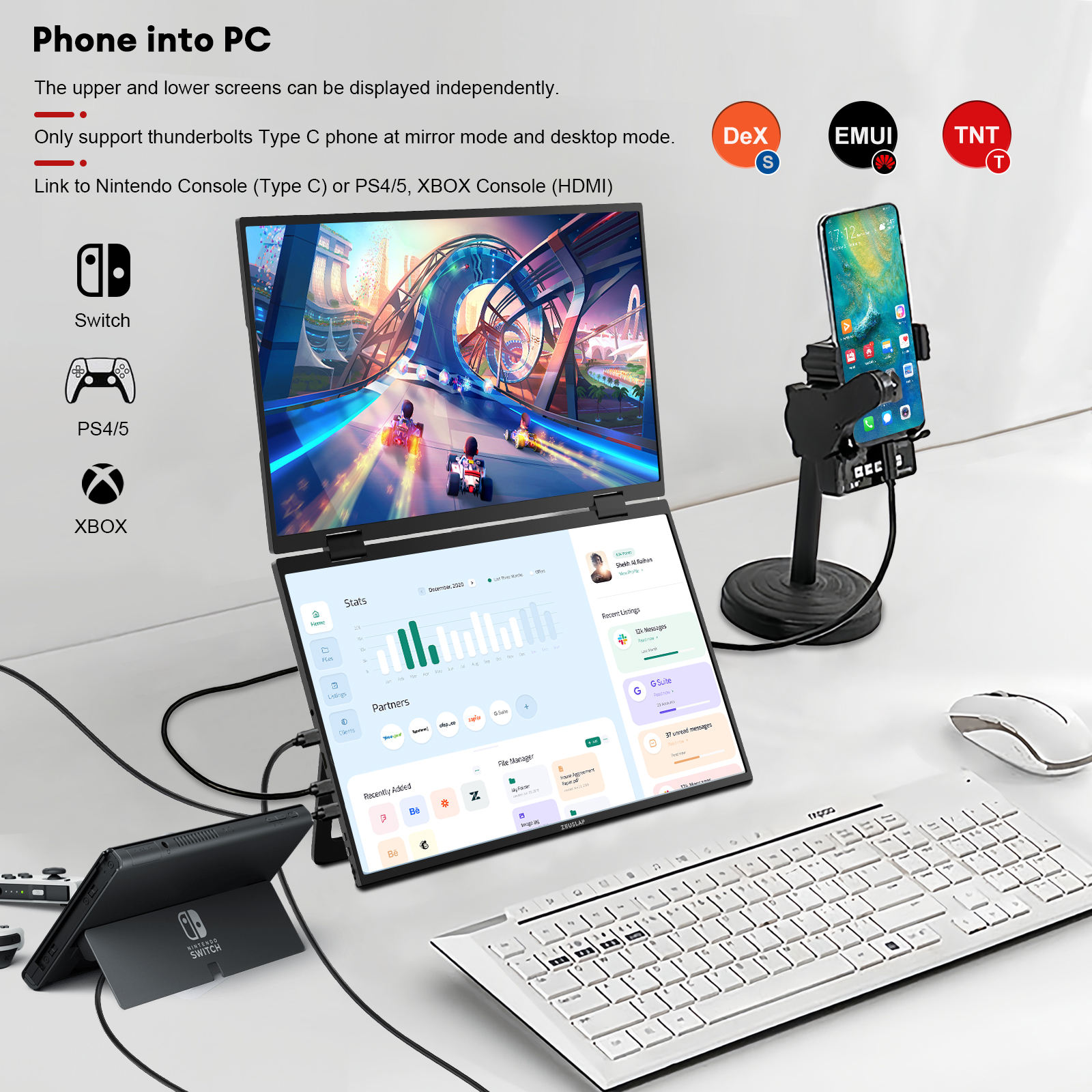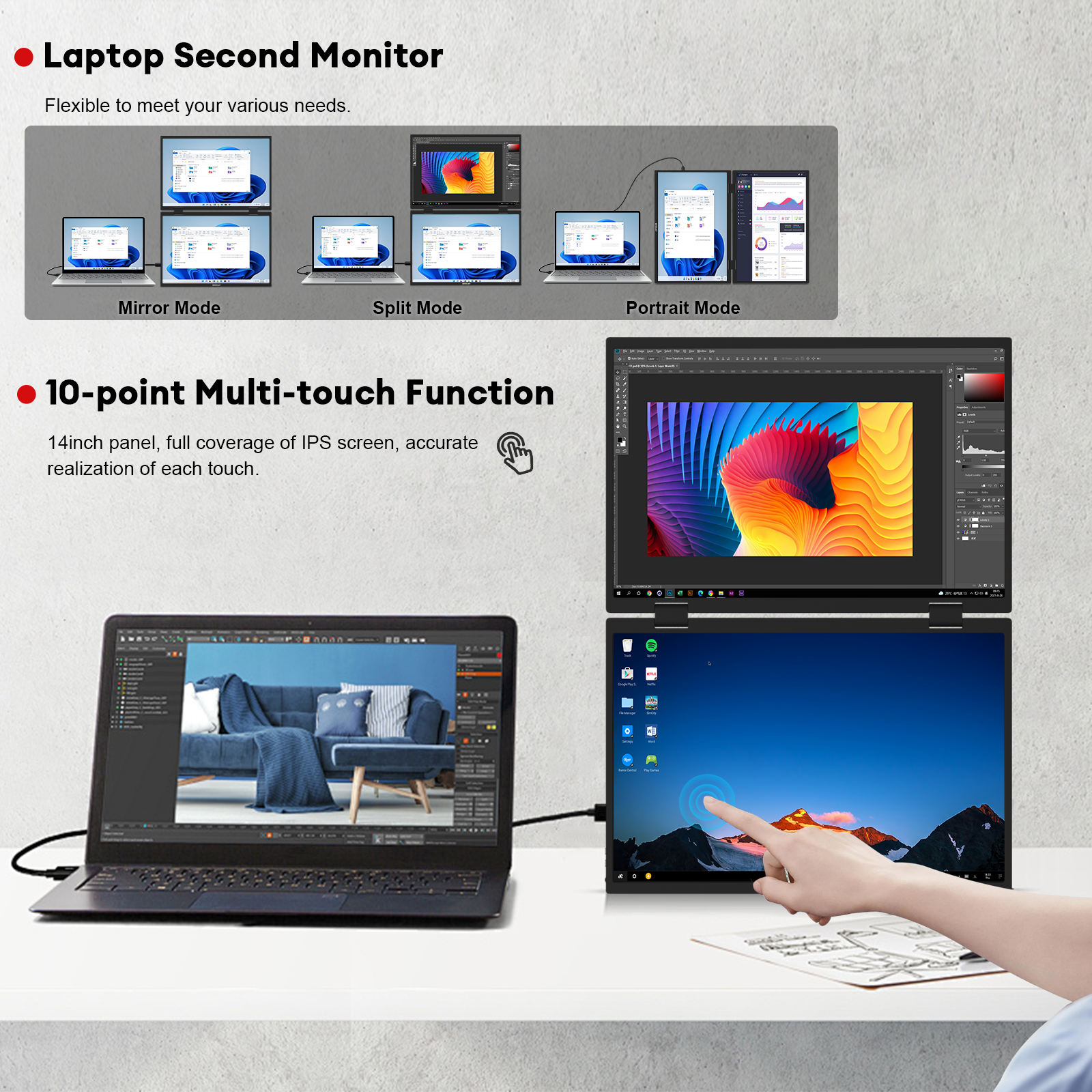 14-Inch Dual Screen Portable Touch Monitor 400Nits Gravity Sensor Flip Screen Business Compatible New PC Laptop with Type-C Port