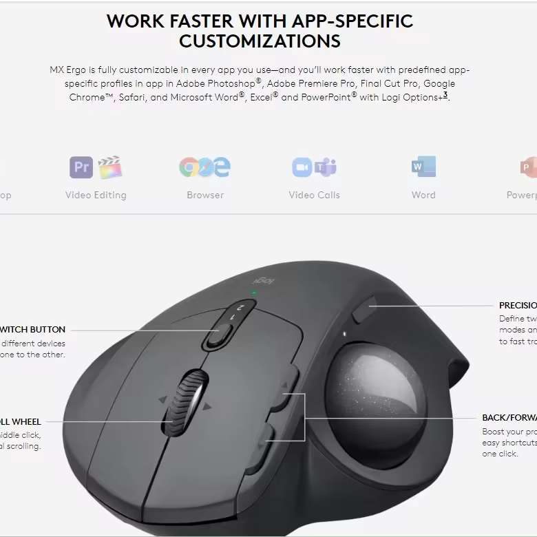 Logitech MX ERGO Advanced Wireless Trackball Mouse